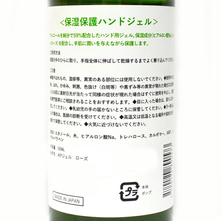 【新品】AVPジェル ローズ 保湿保護成分入りアルコール59%配合ハンドジェル 速乾タイプ 500ml×12本セット 日本製 即出荷可能